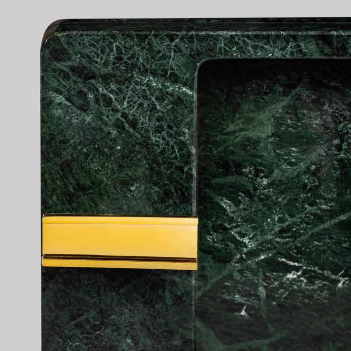 ‘Adam’ ashtray has been designed to complement one’s passion for cigars. It is undoubtedly a perfect gift for cigar connoisseurs. It has been carved from a single piece of natural green marble and enhanced with sleek yet practical brass cigar holder. Combination of these materials render distinctive quality to this piece making it a perfect choice for your study or smoking room.