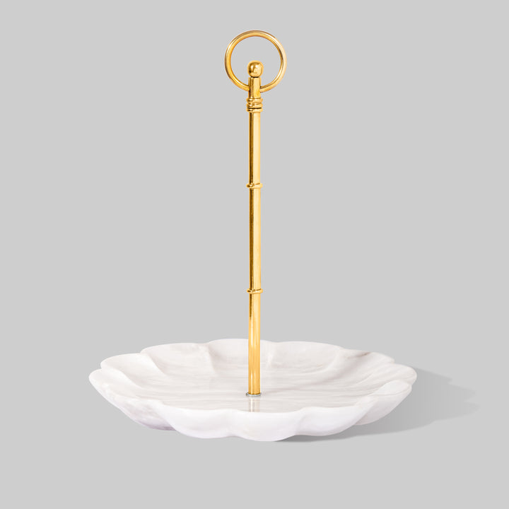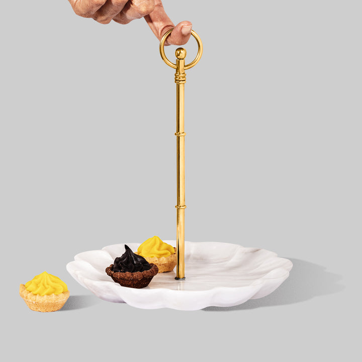 A small flower shaped, hand-crafted platter, designed to be passed around with delicacies of your choice. Elegant brass holder makes it easy for you serve in style.
