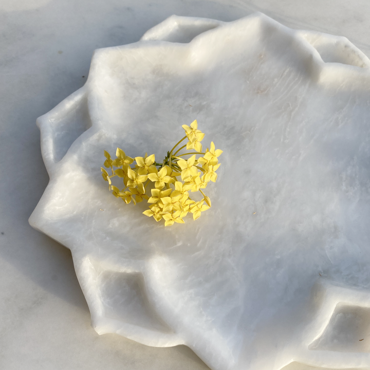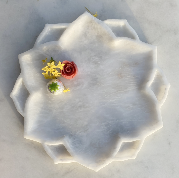 ‘Lotus platter’ celebrates the essence of summer with its pristine and whimsical design. Add serenity to your space by styling it with candles and flowers or serve delicacies and turn your tablescape into a piece of art.