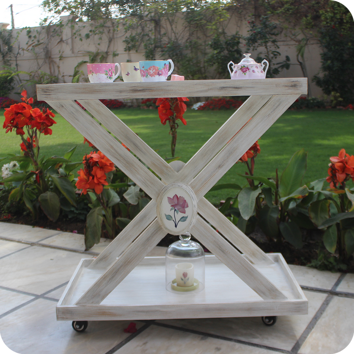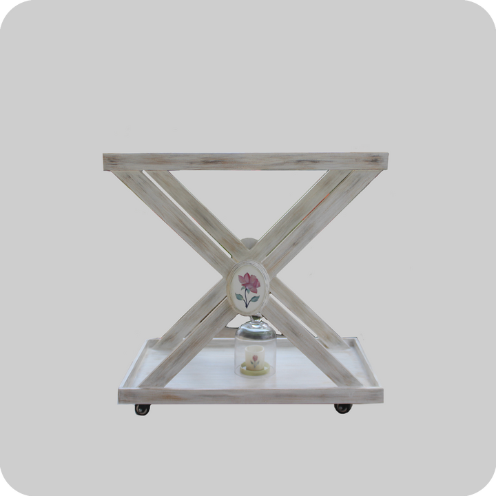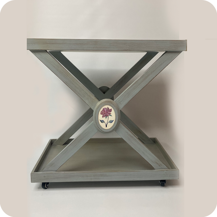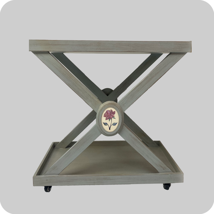 A timeless classic - ‘Rose Trolley’ signifies our passion for combining inlay craft with contemporary design. Minimally designed crossover side panels enhanced with mother of pearl inlaid motif lend air of elegance to it. This two-tier trolley offers ample serving space. Simplicity and functionality of this piece makes it a must-have for every home.